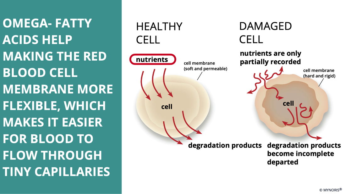 Para manter as células e as suas membranas saudáveis precisamos – para além de água limpa e vitalizada – de ácidos gordos ómega 3, como um dos nutrientes mais importantes. Os ácidos gordos ómega 3 são a chave para uma membrana celular a funcionar correctamente, que canaliza os nutrientes para a célula e liberta os resíduos da célula.