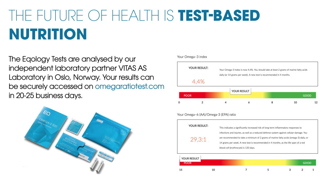 Conceitos de ómega 3 baseados em análises ao sangue da empresa norueguesa Eqology